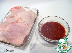 Куриные бедра хорошо промойте, обрежьте лишнюю кожу и жир, просушите бумажным полотенцем.