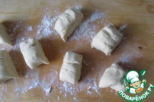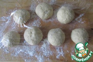 Каждую часть округляем, накрываем пленкой и оставляем минут на 15.