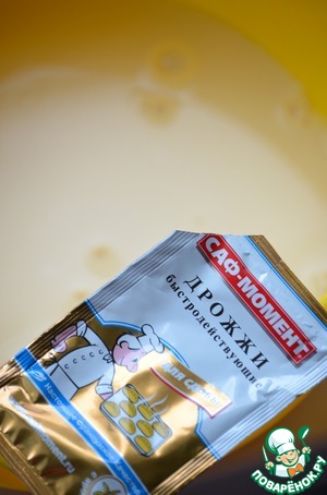 • В большой миске распустить дрожжи водой и с сахаром 2 ст. л.
