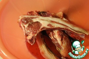 Замариновать в гранатовом соке и соевом соусе на 2 часа. Можно на ночь.