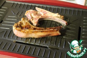 Вынуть мясо из маринада и промокнуть бумажным полотенцем. Обжарить на гриле с двух сторон.