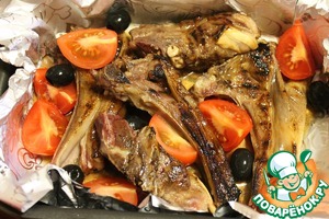 Нежное, сочное мясо барашка, со сладкими помидорками и пряными маслинами. На гарнир лучше всего подойдет салат из свежих овощей. Угощайтесь, друзья!