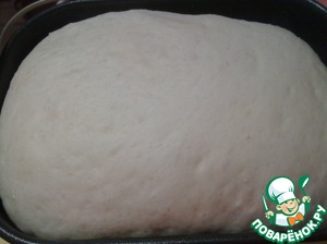 Помещаю ведерко в хлебопечку, включаю режим замеса теста. Даю тесту увеличиться в объеме примерно в 2 раза.