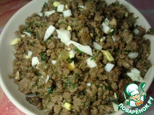 Приготовить начинку из мясного фарша. Можно использовать любую другую начинку, лишь бы она была не жидкая.