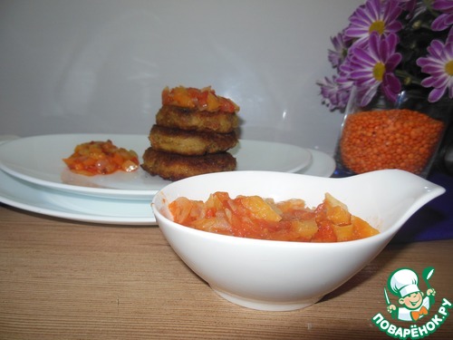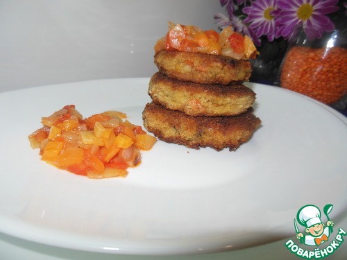 Рецепт «Котлеты из чечевицы под овощным соусом»: