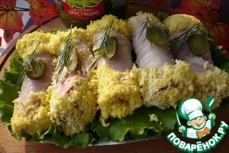 Обжарить на сливочном масле с обеих сторон под гнетом (приблизительно 10 мин с каждой стороны).
