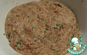 Хорошо вымешиваем фарш. Делим его на четыре части.