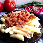 По мотивам соуса "Болонезе" я готовила сегодня ужин. С нестандартными для этого соуса продуктами. Но вышло - очень вкусно!