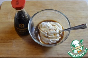 • Обмазать рыбу соево-сметанным соусом. Рыбу выложить на противень, застеленный пергаментом или силиконовым ковриком. Запекать в духовом шкафу 35-40 минут при 190 градусах