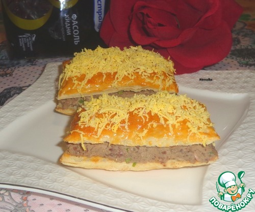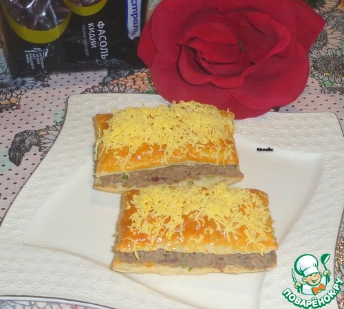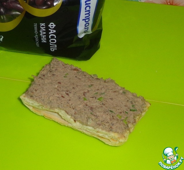 Слоеные закусочные пирожные с паштетом из красной фасоли и куриной печени.