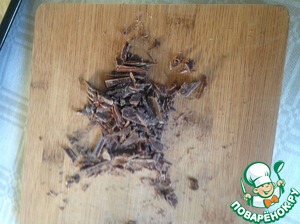 • Далее берем шоколад и нарезаем его дольками или маленькими кубиками (легче будет заворачивать если будут дольки, и больше сложить можно)