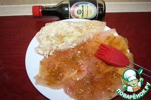 Разрезать куриное филе вдоль на 4 части (я готовила из половинки филе).