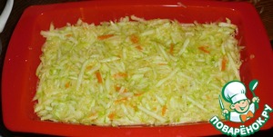 Дальше - кабачок на крупной терке (лишнюю жидкость отжать!).