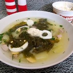 Зеленый борщ с говяжьими ребрами