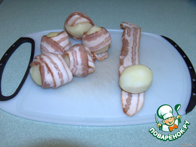 Отварную картошку остудить и завернуть в бeкон.