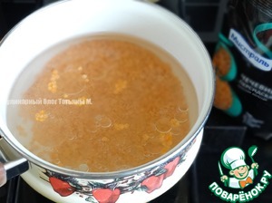 Чечевицу промыть, залить бульоном и варить 15 минут;