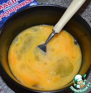 Яйца перемешать в отдельной тарелочке. Не взбивать.