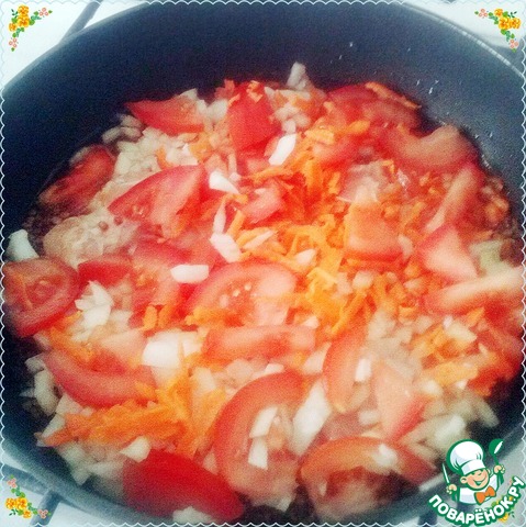 Куриное мясо нарезать средними кусочками, морковь натереть на терке, лук и помидор нарезать не мелко. Гречку промыть и поместить в емкость, в которой собираетесь готовить (в моем случае сковорода). Далее добавить курицу, посолить и добавить нарезанные овощи и травы для приятного аромата, немного перемешать (совсем чуть-чуть). Томатную посту развести в воде и все залить :)