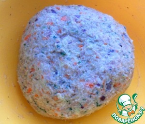 Получившийся капустно-овощной фарш хорошо вымешать, отбить.
