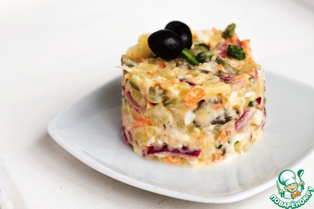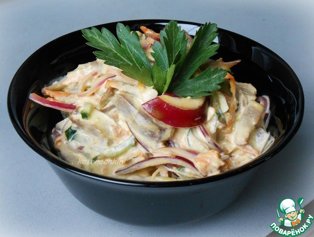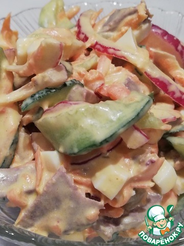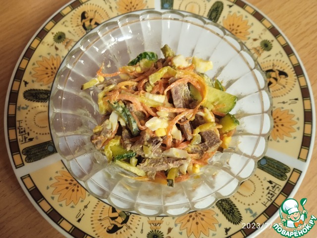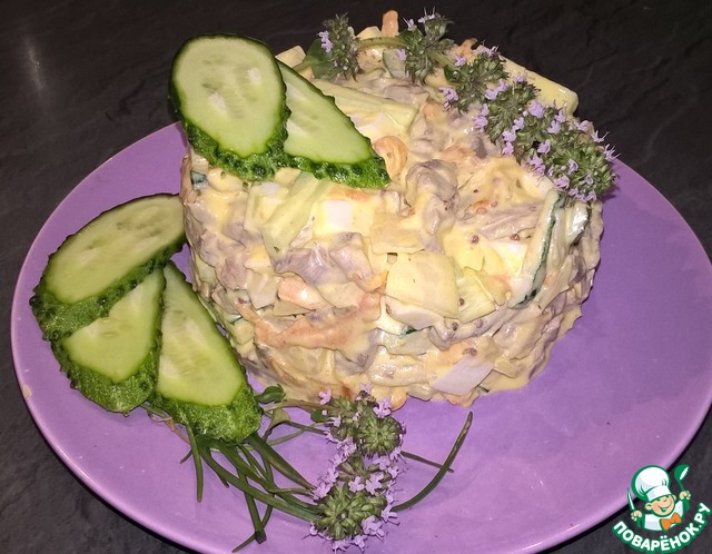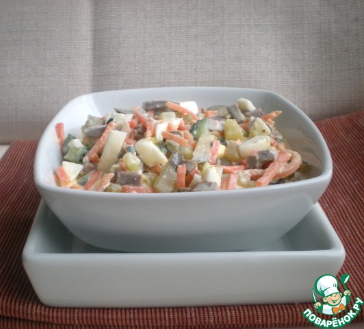 Рецепт «Салат с сердцем, маринованным луком и огурцом»: