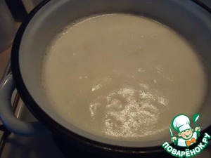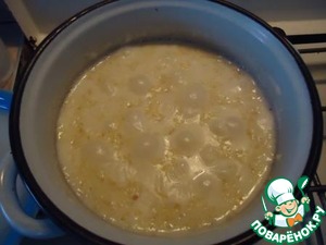 Молоко довести до кипения, добавить соль и сахар. На заднем плане у меня греется железный кружок, когда готовлю каши в обычной кастрюльке с тонким дном, после закипания переставляю на него и ничего не пригорает. Ну это так, отступление, может кому пригодится.
