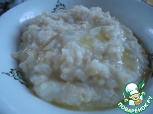 По истечении времени кашу попробовать, при необходимости добавить соль-сахар, выключить газ, положить кусочек масла и накрыть крышкой ещё на пару минут.