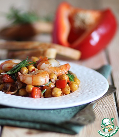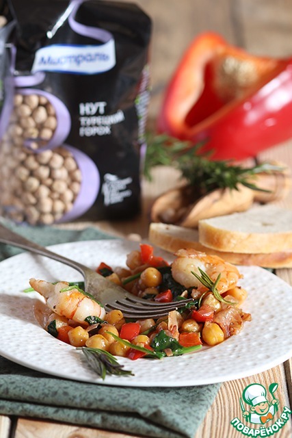 Рецепт «Тушеный нут с креветками и беконом»: