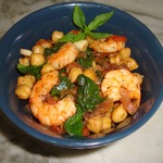 Тушеный нут с креветками и беконом
