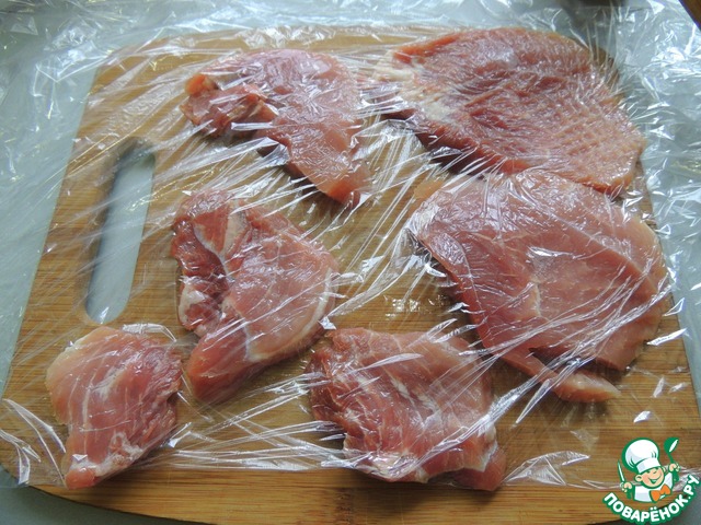 Свинину нарезать на небольшие кусочки и слегка отбить.