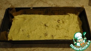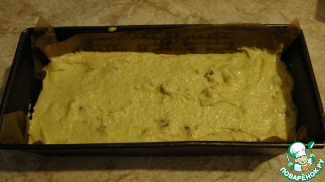 Выкладываем тесто в форму, которую нужно смазать сливочным маслом и застелить пергаментной бумагой и отправляем в разогретую до 200 градусов духовку. Выпекаем до сухой спички, около 30 минут. Ориентируйтесь на свою духовку. Мне понадобилось немного больше, так как у меня была глубокая форма.