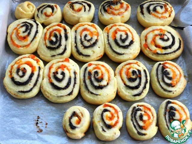 Скрутить тесто в рулет и нарезать на колечки-улитки.