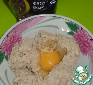 Добавляем в филе яйцо и хорошо перемешиваем. Добавляем душистый перец, мускатный орех и измельченный чеснок. Перемешать. Основа для рулета готова.