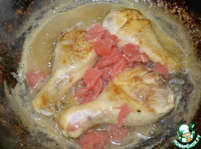 Добавить грейпфрут к мясу и протушить еще 10 минут.