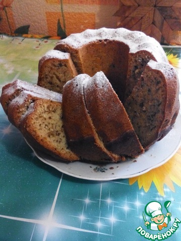 Кекс волшебный!!! Рассыпчатый, нежный, ароматный... У меня получился темный - наверно, из-за сахара. Я использовала коричневый. И орехов я чуть больше сыпанула. Спасибо за рецепт! От меня плюсик)))