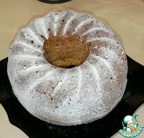 • Затем аккуратно выложить кекс из формы на блюдо, перевернув его при этом. Когда кекс остынет, обсыпать его сахарной пудрой.