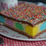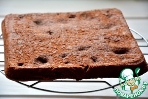 Выпекаем корж в форме 20*20, при темпер. 180* 25-30 минут. По готовности выкладываем на решетку, даем остыть и разрезаем на 2 части
