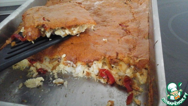 Теперь выкладываем эту массу на рыбку с луком и отправляем в духовку на 30-40 минут при 170 градусах.