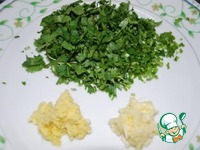 9. Кинзу порубить, имбирь и чеснок измельчить. Я для этого использовала терку.