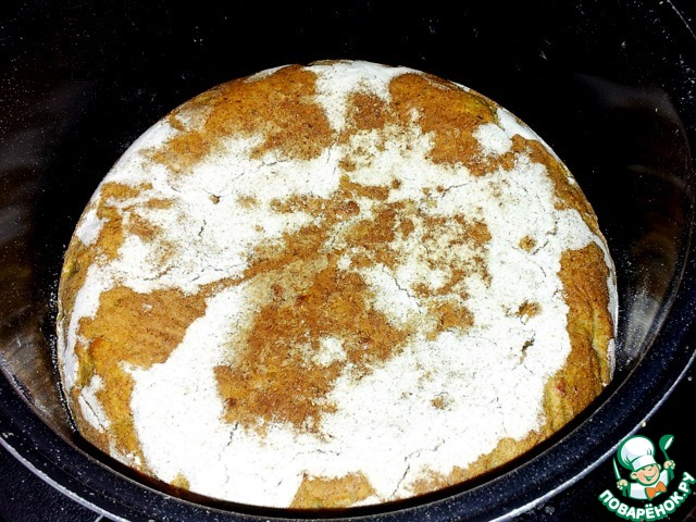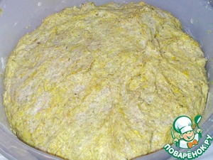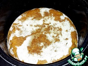 Добавила муку и замесила тесто. На дно чащи мультиварки насыпала ржаную муку и в середину выложила тесто. Сверху тесто так же обсыпала ржанной мукой.