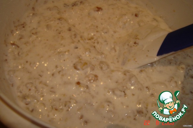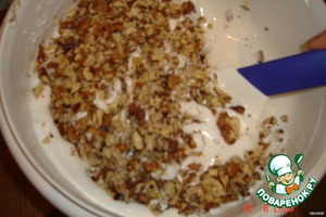 Oрехи раздавить скалкой или разбить отбивным молотком (орех не должен быть мелким). -