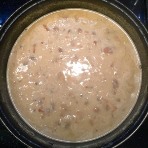 Вливаем бульон, вино и пару минут выпариваем алкоголь. Если же Вы готовите без вина-просто добавьте бульон и сразу приступайте к следующему этапу.