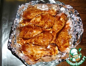 Из фольги делаем чашечку, куриные ножки укладываем в нее довольно плотно.