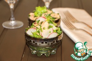 Рецепт «Зеленый салат с горбушей и редисом»: