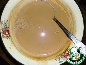 Выльем на него (прямо на горячий) нашу заливку и оставим пропитываться несколько часов. Автор советует делать его с вечера, чтобы он пропитывался всю ночь. Скажу честно, от заливки я ожидала большего, думала что он будет очень влажным... В следующий раз я сделаю заливки побольше))