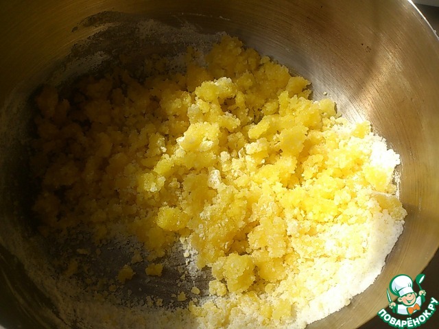 Смешиваем желтки (или желток) с мукой и сахаром -
