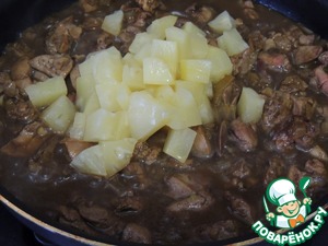 Куриная печень с ананасами
