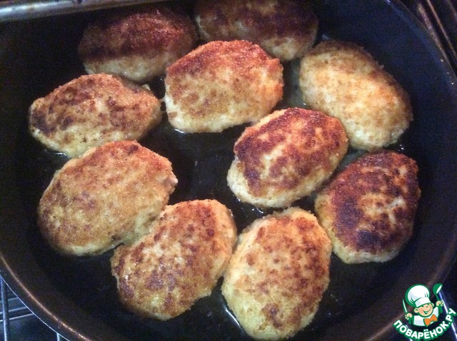 Готовить пожарские котлеты можно на смеси сливочного и подсолнечного масла. Обжаривайте котлеты до подрумянивания с двух сторон, затем их нужно довести до готовности в духовке, разогретой до 180 градусов -