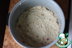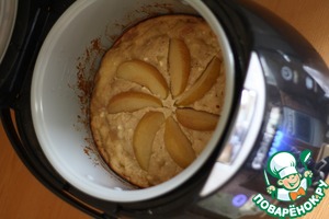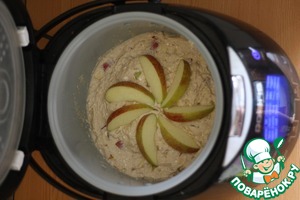 Чашу мультиварки смазываем маслом и выливаем туда нашу кашицу. Сверху я украсила яблочными дольками, что очень кстати пришлось по вкусу! Мультиварку ставлю на режим "Выпечка" на 60 мин.