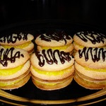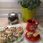 Украсить печенюшки шоколадом с помощью маленького пакета из полиэтилена или кондитерского шприца. Нанести полоски или другой узор (на ваш вкус) на поверхность печенья. Приятного аппетита!