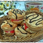 Приступим к заключительной стадии приготовления. Берём одну печенюшку, намазываем маленькой ложечкой джем, берём вторую, соединяем. Получилось печенье-сэндвич!